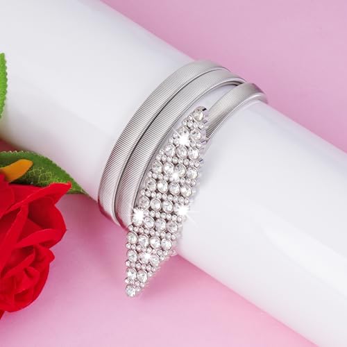 Metal Skinny Belt Elastic Rhinestone Sparkly Belt for Women Formal Dresses Suits Skirts 7