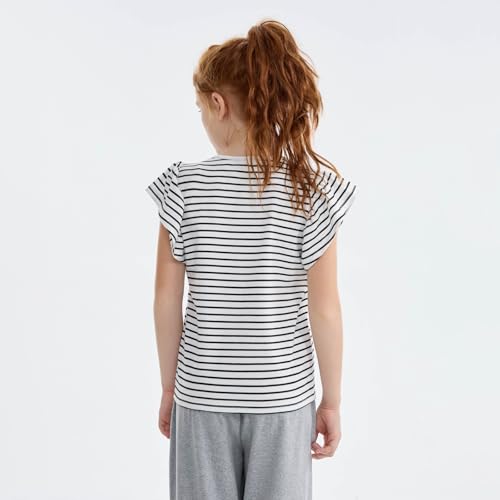 Girls Summer Shirts Kids Striped Ruffle Sleeve T Shirts Crew Neck Casual Tops Cute Short Sleeve Tees 5-14 Years 5