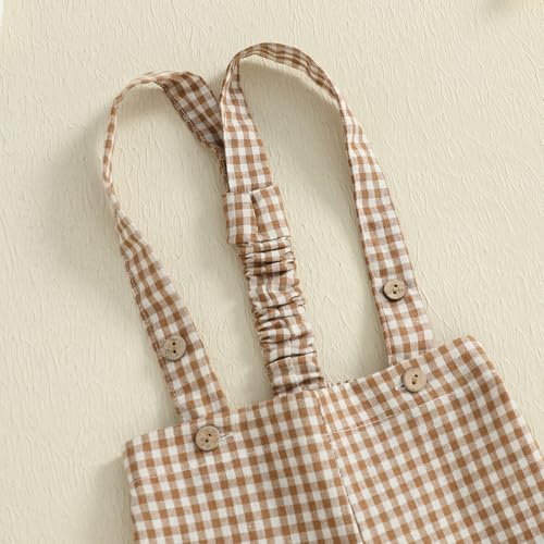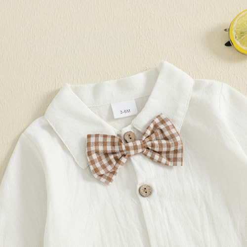 • Design: Toddler baby boy clothes fall outfits cotton linen long sleeve romper plaid pants set infant boy outfit set, baby boy clothes suits newborn dress shirt romper with bowtie suspender pants outfit sets gentleman wedding outfits, newborn boy long sleeve bubble romper onesie, fall cotton linen dress shirt with bow tie, front button and lapel collar design, matching baby boy suspender overalls pants, gingham plaid trousers, adjustable button down shoulder straps, make your little boy look cute