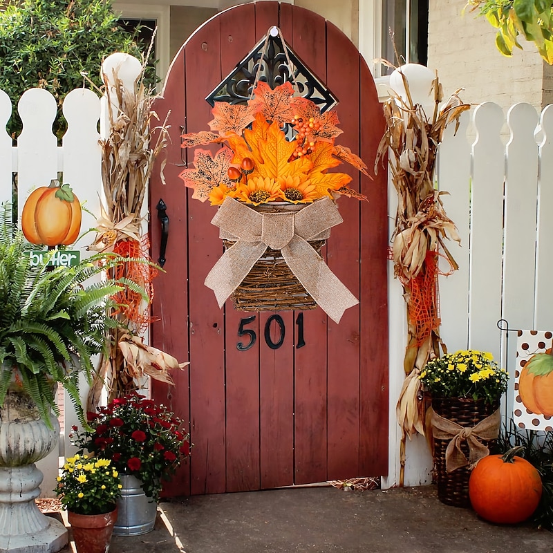 $19.99 - Fall Wreath for Front Door Thanksgiving Harvest Indoor Outdoor Decoration, Natural Vine Basket with Autumn Leaves and Bow, Rustic Door and Wall Hanging 2025. Shop for cheap Thanksgiving & Fall Decoration online? Buy at lightinthebox.com on sale today!
