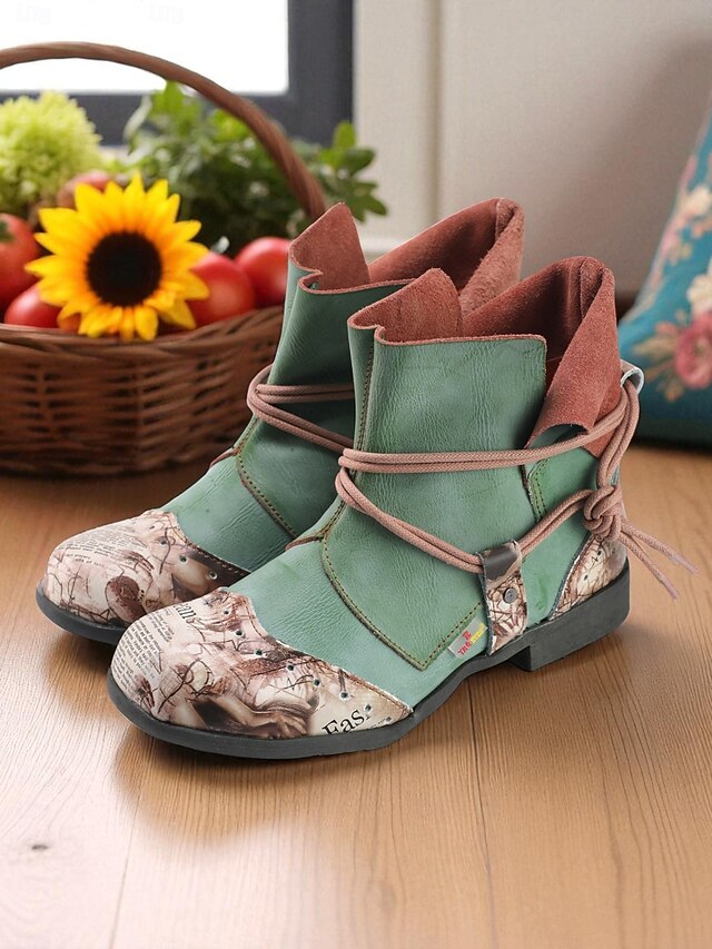 Women's Artistic Patchwork Boots – Colorful Lace-Up Ankle Boots for Creative Streetwear, Urban Gardening and Weekend Getaways 1