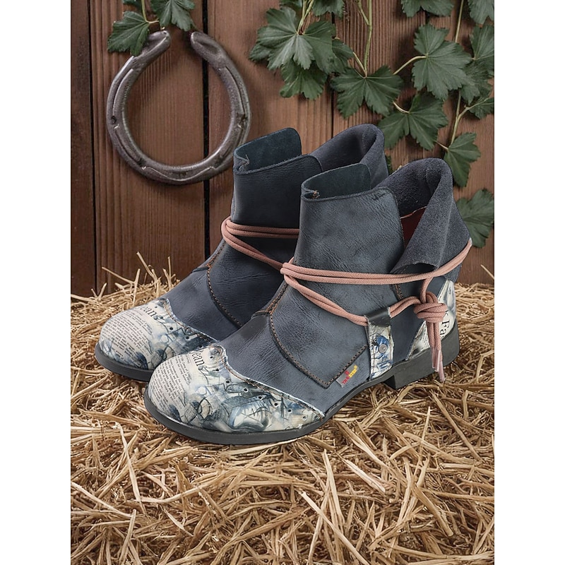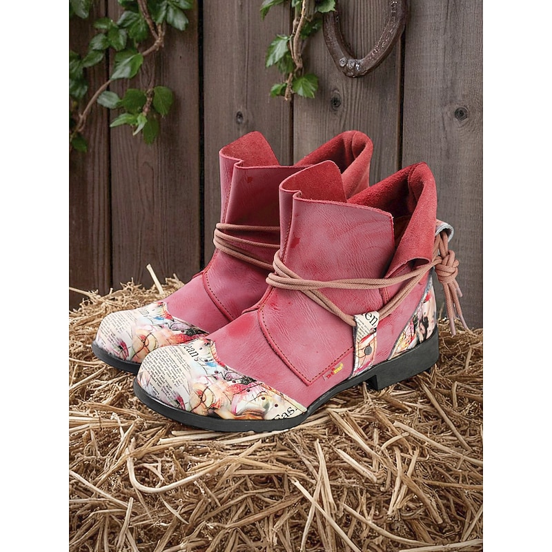 HOT ! Women's Artistic Patchwork Boots – Colorful Lace-Up Ankle Boots for Creative Streetwear, Urban Gardening and Weekend Getaways