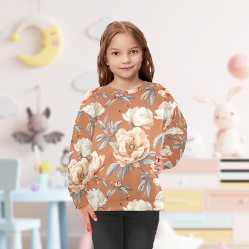 JUNZAN Retro Peonies Terracotta Big Boys Pullover Hoodie Fleece Sweatshirt With Hoodie Sports 4T 6