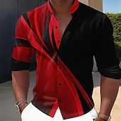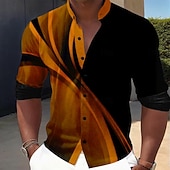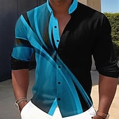More information about Men's Geometric Gradient Line Shirt Button Up Shirt Stand Collar Shirt Long Sleeve Casual Outdoor Vacation Daily Spring Fall Mandarin Collar Band Collar 3D Print Linen Like Shirt Black Green Blue