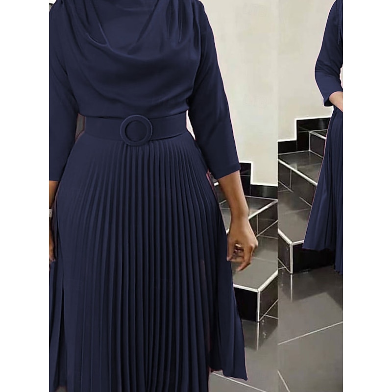 HOT ! Women's Plain Dress Maxi Dress With Belt Elegant Crew Neck 3/4 Length Sleeve Pink Royal Blue Blue Color