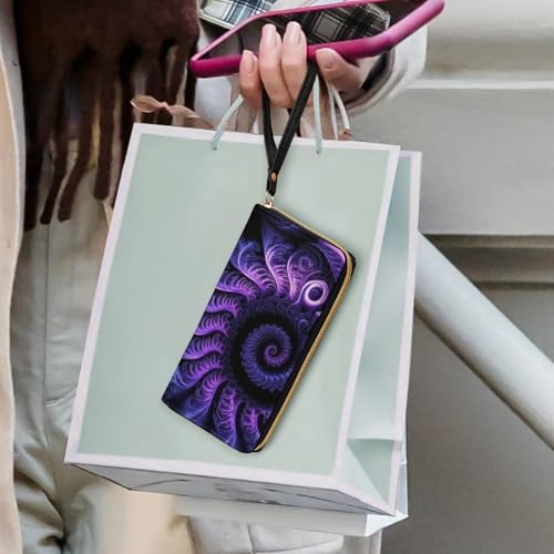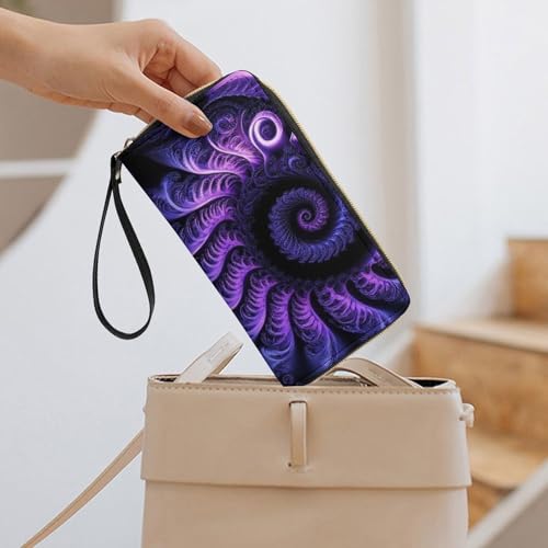 Girl's Long PU Wallet, Travel Purse Fashion Design, Huge Storage Capacity Purse, Cute Decor Zipper Wallet With Rope Trippy Abstract Purple Tie Dye 5