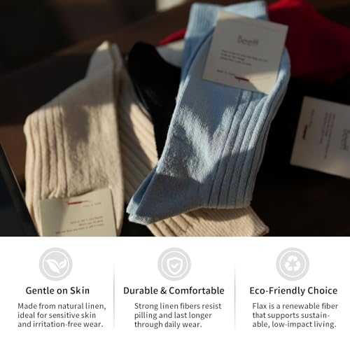 Linen-Cotton Crew Socks, Unisex Breathable Seamless Dress Socks for Men & Women, Moisture Wicking Casual 3