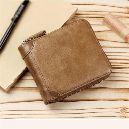 HOT ! Men's Wallet Money Clip Short Style Zipper Driver's License Card Bag Cowhide Pickup Bag, Large Storage, Portable and Wear-Resistant
