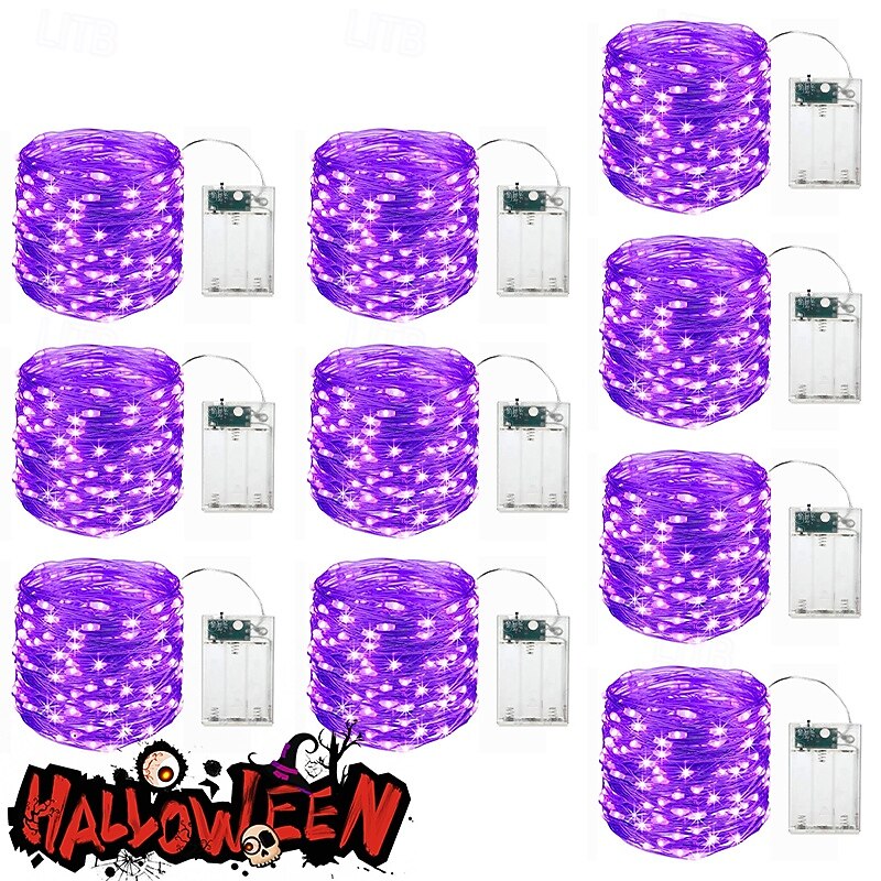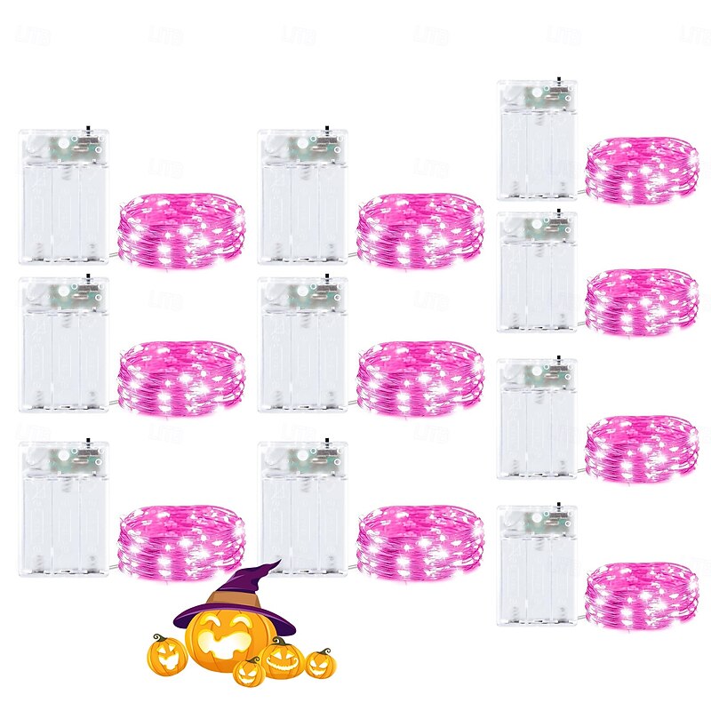 10 Pcs 5M/16.4FT 50LED Beads Fairy String Lights Halloween Christmas Wedding Valentine's Day Party Indoor and Outdoor Atmosphere Decoration Light String AAA Battery Box Timer Function 27
