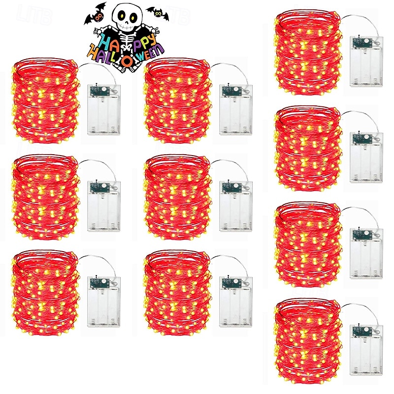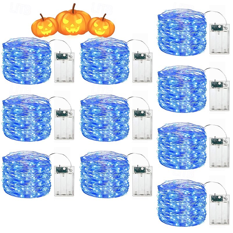 10 Pcs 5M/16.4FT 50LED Beads Fairy String Lights Halloween Christmas Wedding Valentine's Day Party Indoor and Outdoor Atmosphere Decoration Light String AAA Battery Box Timer Function 32