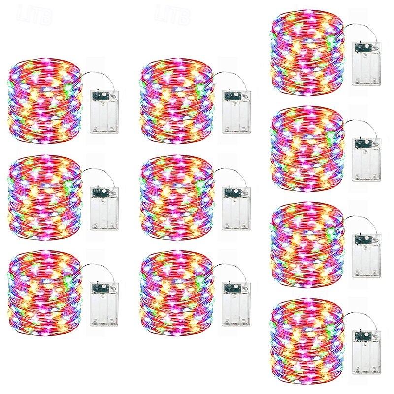 10 Pcs 5M/16.4FT 50LED Beads Fairy String Lights Halloween Christmas Wedding Valentine's Day Party Indoor and Outdoor Atmosphere Decoration Light String AAA Battery Box Timer Function 8