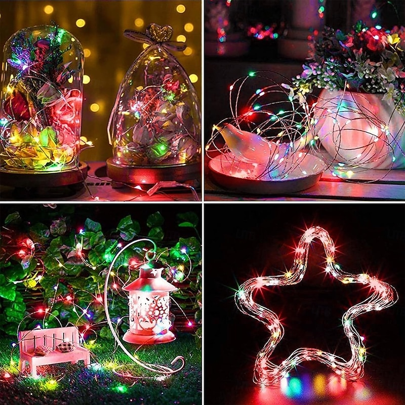10 Pcs 5M/16.4FT 50LED Beads Fairy String Lights Halloween Christmas Wedding Valentine's Day Party Indoor and Outdoor Atmosphere Decoration Light String AAA Battery Box Timer Function 34