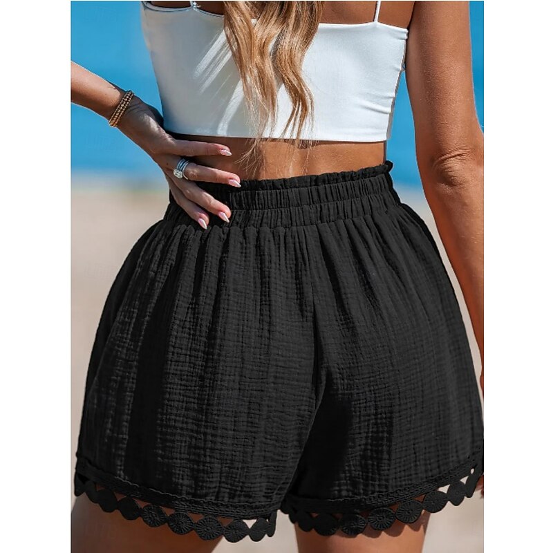 More information about Women's Chinos Shorts Streetwear Ethnic Style Basic Short High Waist Plain Pocket Elastic Waistband Comfy Soft Comfortable Micro-elastic Outdoor Vacation Street Black White Pink Blue Summer Regular