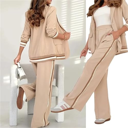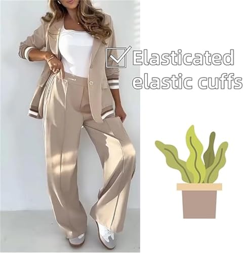 More information about 2025 Temperament Solid Color Ribbed Suit Set,Blazer and High Rise Straight Leg Pants Sets,Women's 2 Piece Set Lapel Blazer