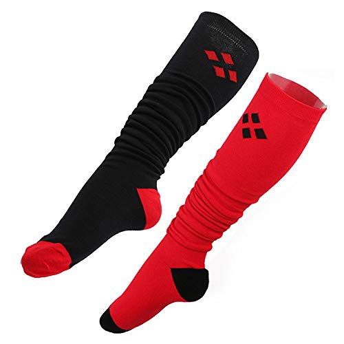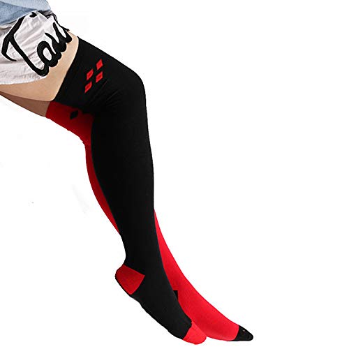 HOT ! Women Extra Long Over the Knee Cotton Spring Fall Winter Soft Warm High Boot Stockings, 1 Pair Black + Red, One Size