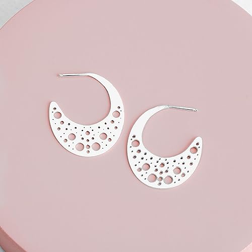 More information about Nebula Hoop Earrings | Sterling Silver Large Big Geometric Cut Out Galaxy Star Night Sky Constellation Earrings | Perfect Gift for Her