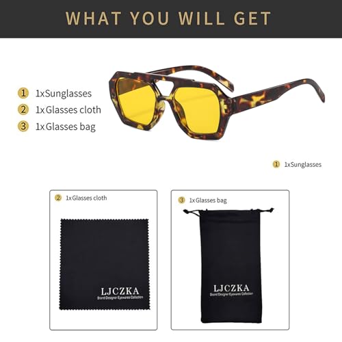 LJCZKA Retro Square Sunglasses for Women Men Trendy Hexagonal Thick Frame Double Bridge Sun Glasses Vintage Shades 4