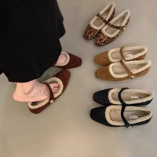 Mary Jane Flats for Women Faux Fur Ballet Flats Winter Fuzzy Warm Comfy Flats Slip On Flats Shoes Warm Plush Lined 5