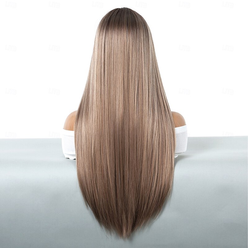 HOT ! Synthetic Wig Uniforms Career Costumes Princess Straight kinky Straight Middle Part Layered Haircut With Bangs Machine Made Wig 26 inch Rose Gold Synthetic Hair Women's Cosplay Party Fashion Light