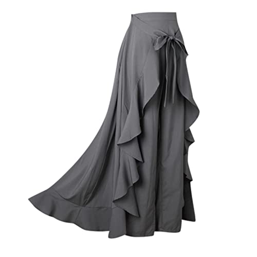 HOT ! HGps8w Women's Irregular Ruffle Pants, High Waist Bow Tie Casual Maxi Long Palazzo Overlay Culottes Skirts Trousers