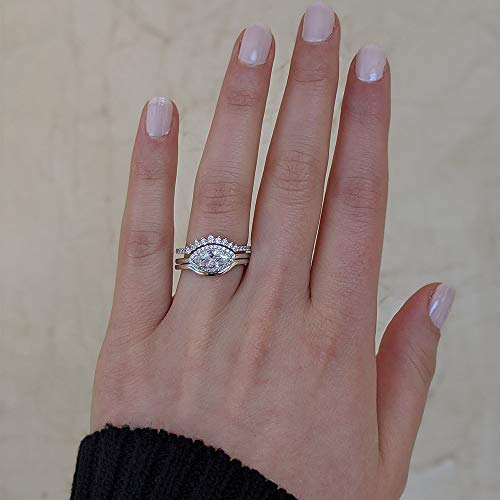 TwoBirch 18k White Gold Microplated East West Marquise Three Ring Bridal Set with Plain Contour Band and Tiara Prong Style Curved Ring (925 Silver, Sizes 7, 8, 9) 6
