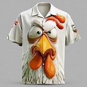 More information about Men's Animal Cartoon Rooster Shirt Cuban Collar Shirt Button Up Shirt Short Sleeve Funny Vacation Holiday Streetwear Summer Camp Collar Shirt 3D Print White 1 White