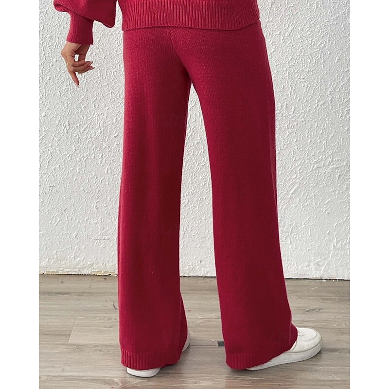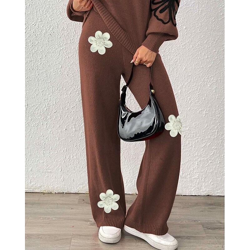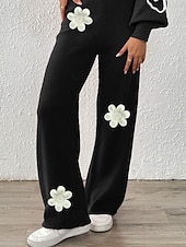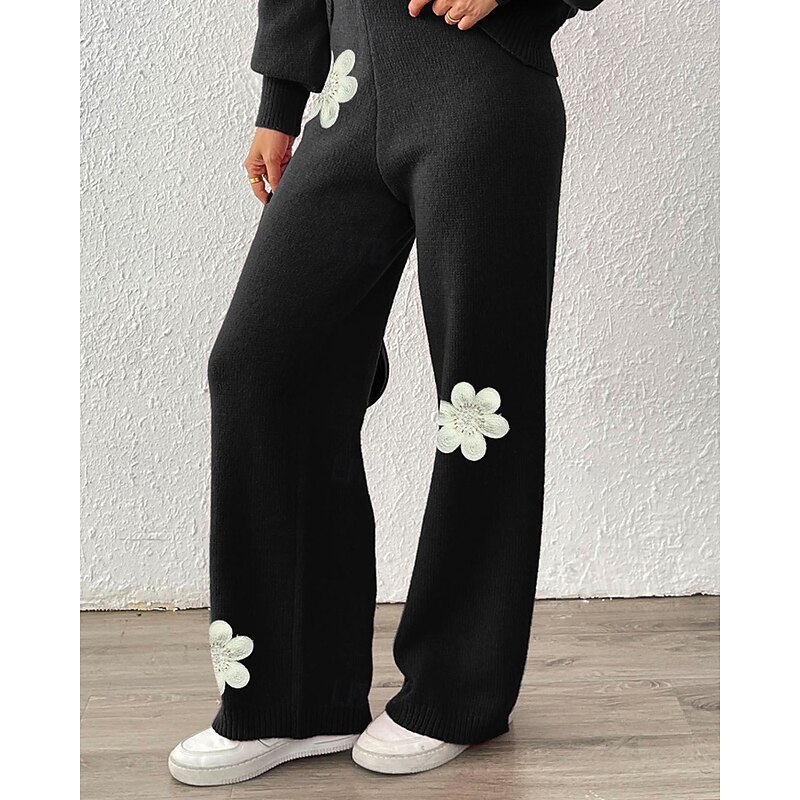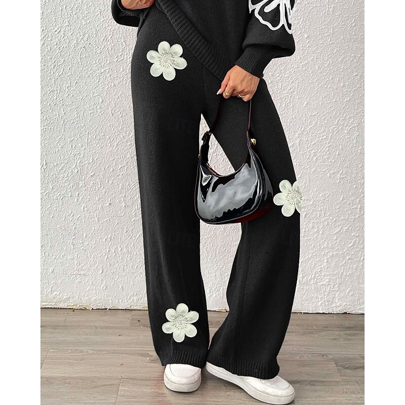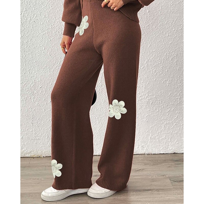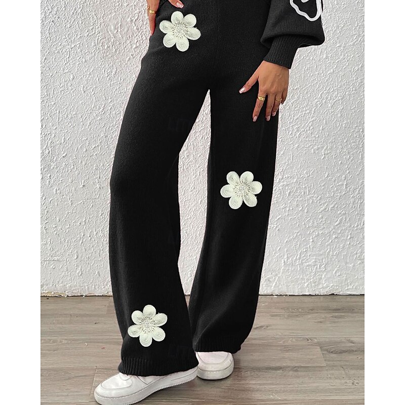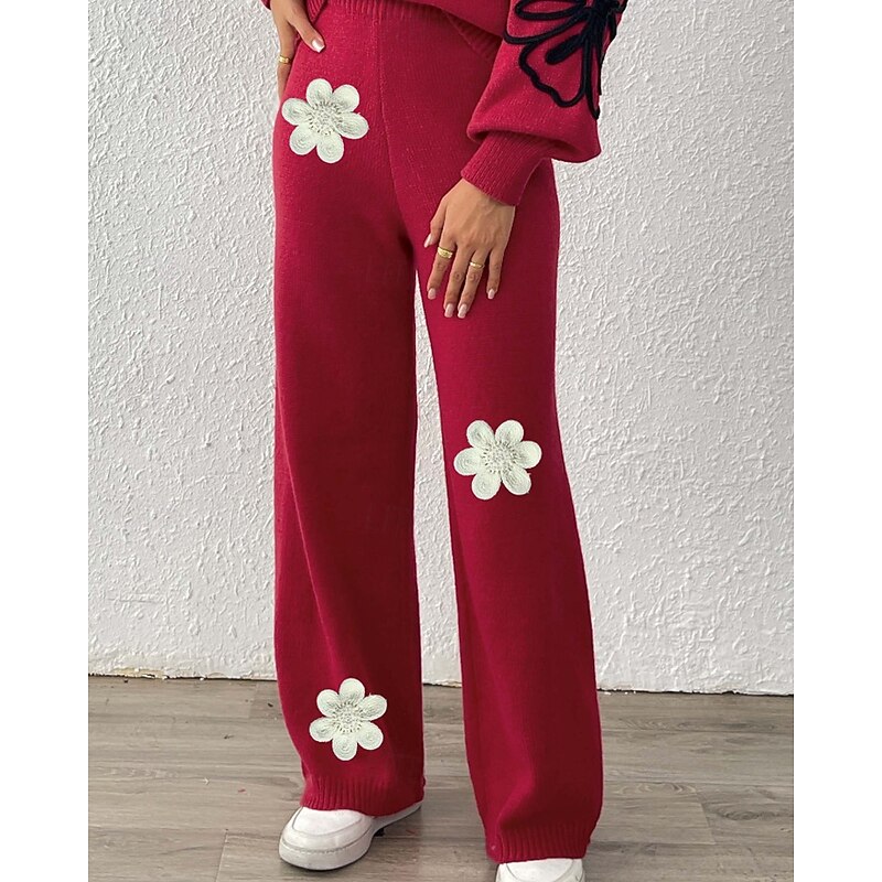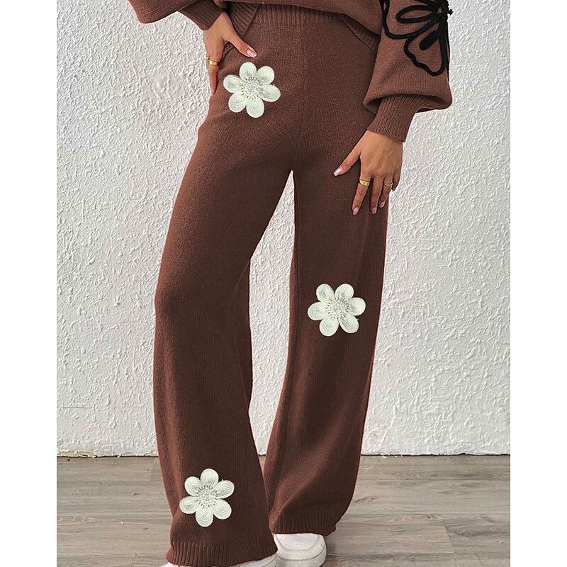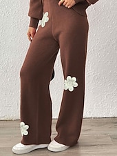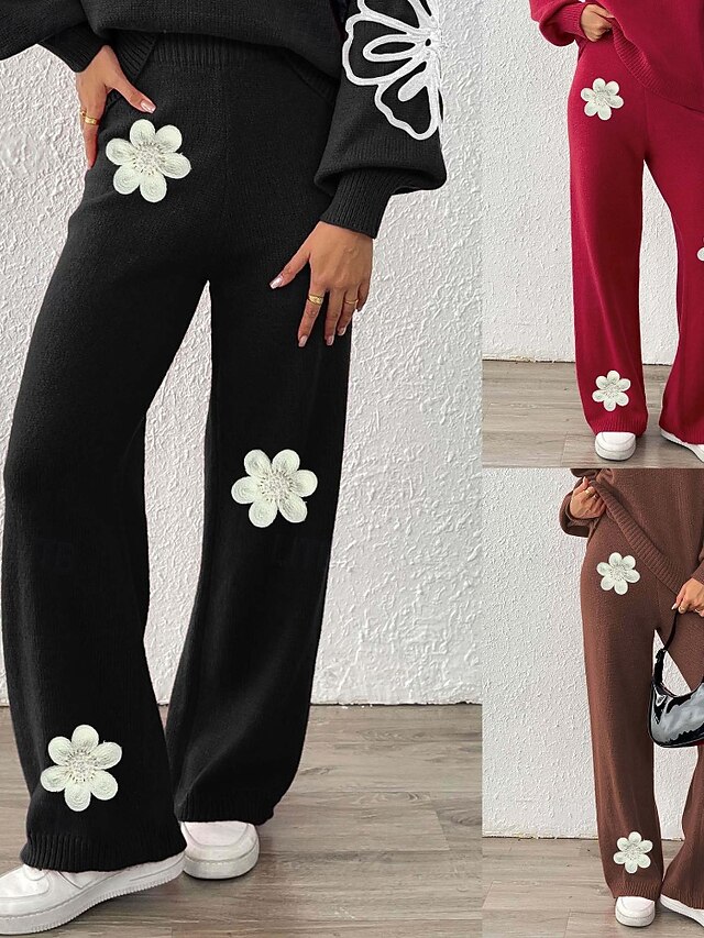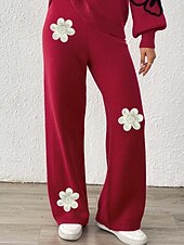 More information about Women's Wide Leg Slacks Streetwear Casual Full Length Natural Flower Elastic Waist Printing Soft Street Holiday Weekend Wine Black Coffee Winter Regular Fit