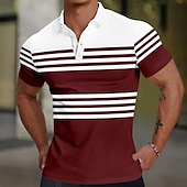 More information about Men's Line Rugby Polo Short Sleeve Polo Shirts Collared Shirts Casual School Outdoor Athleisure Daily Wear 3D Print Summer Red Dark Green Dark Blue