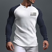 More information about Men's Graphic National Flag T Shirt Raglan T Shirt Waffle T Shirt Long Sleeve T shirt 3D Print V Neck Shirt Daily Classic Outdoor Sports Outdoor Casual Going out White Brown Dark Blue Spring & Fall