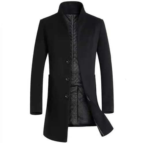 Men's Long Woolen Blazers Thickened Business Trench Coats Winter Slim Stand Collar Warm Windbreaker Jacket 4