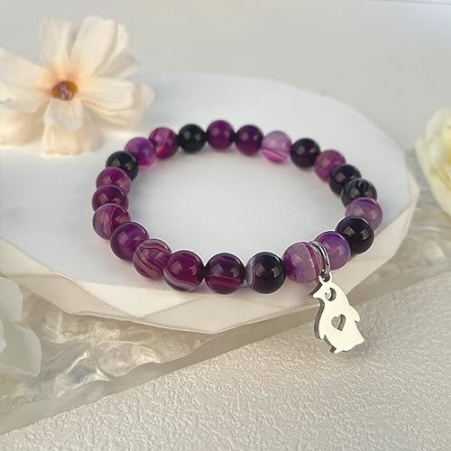 • Size🐧8mm natural stone beads, our stretch penguin bracelet is elastic and adjustable, easy to put on and take off, girth is about 7.2 inches, fits most women wrists, the size of the charm is: 0.7''*0.43''.