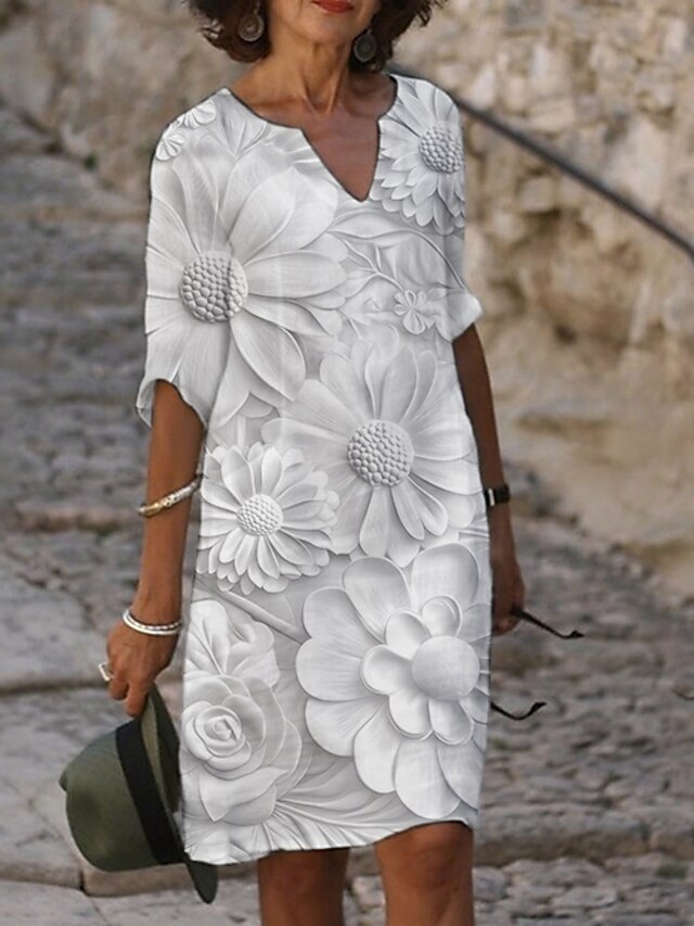 More information about Women's Midi Dress Casual Dress Print Dress Fashion Modern Daily Beach Weekend Regular Fit Floral 3/4 Length Sleeve Crew Neck Yellow Blue Purple Gray Summer Spring Fall Autumn