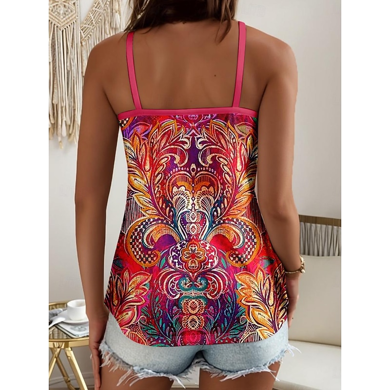 Women's Camisole Tank Top Sleeveless V-Neck Paisley Print Bohemian Style Casual Summer Wear Figure-Hugging Multicolor Contrast Trim Regular Fit 1
