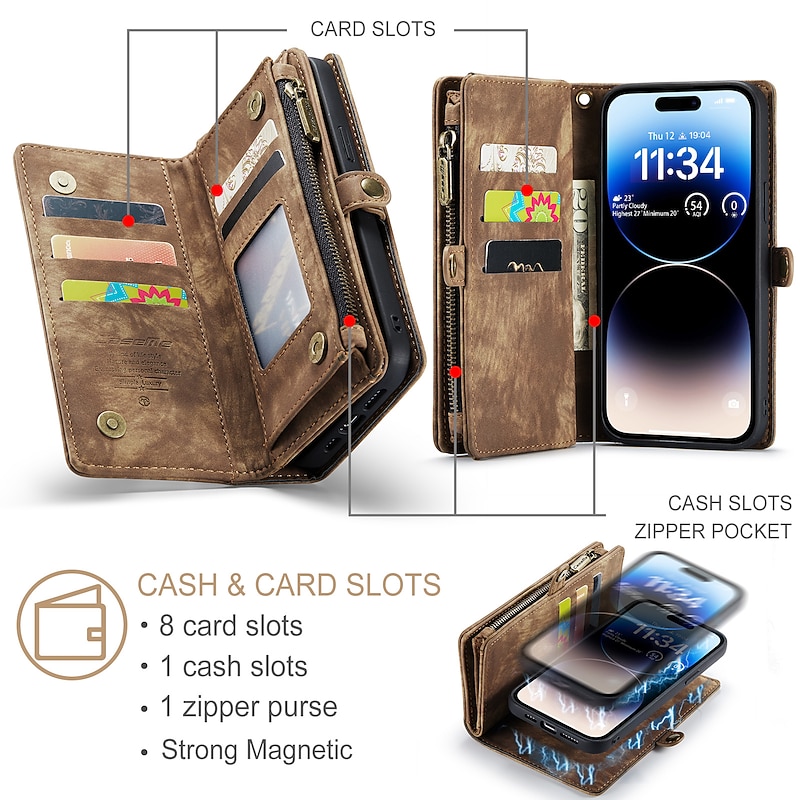 2. Our Detachable Wallet Design offers an impressive 11 Card Slots, 3 Cash Slots, and even a Zipper Coins Slot! This phone case doubles as a large wallet, allowing you to carry everything you need without needing a backpack. Store ID cards, credit cards, business cards, transportation cards, as well as Cash and coins with ease.