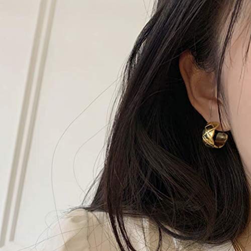 HOT ! 18K Gold Plated Crush Hoop Earrings, Gold Hoops, Women Jewelry, Minimalist Classy Quilted Vintage Huggie Hoops, Women Gift