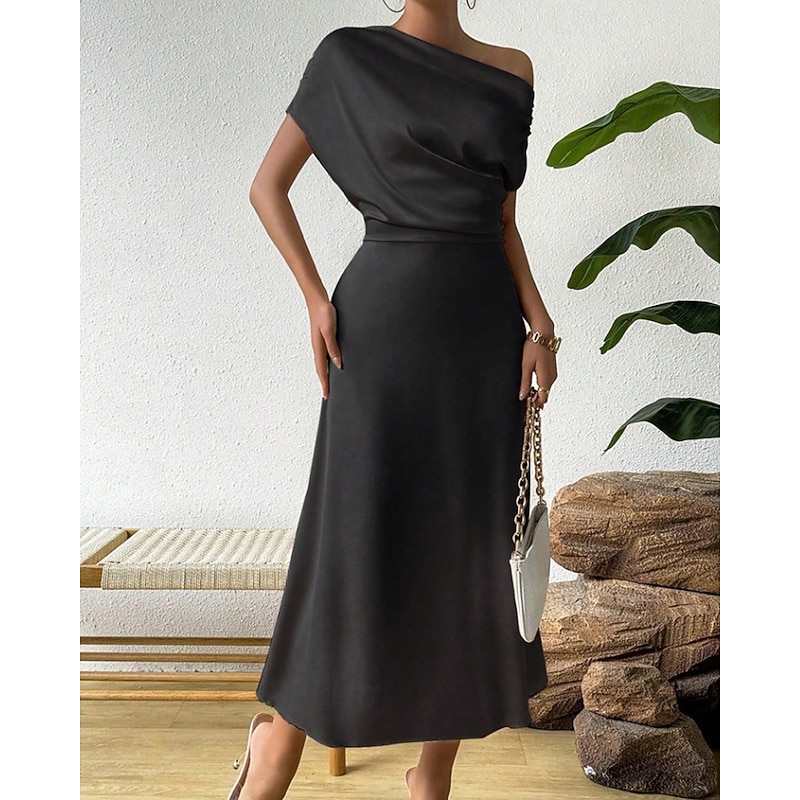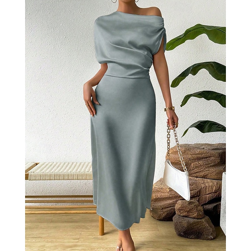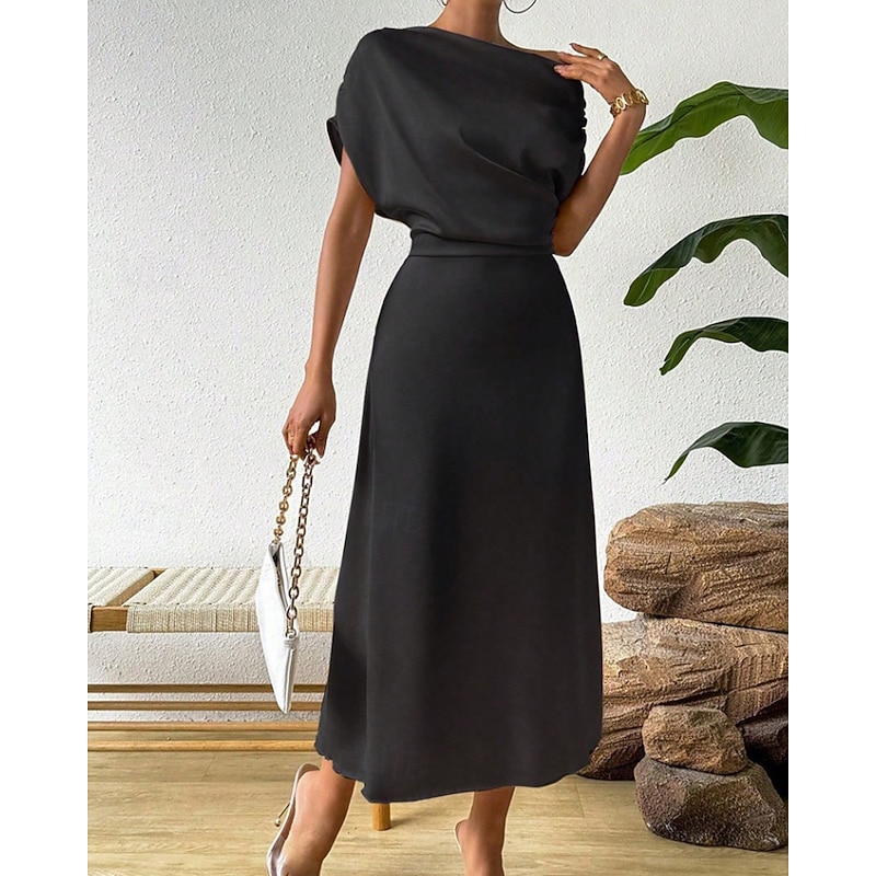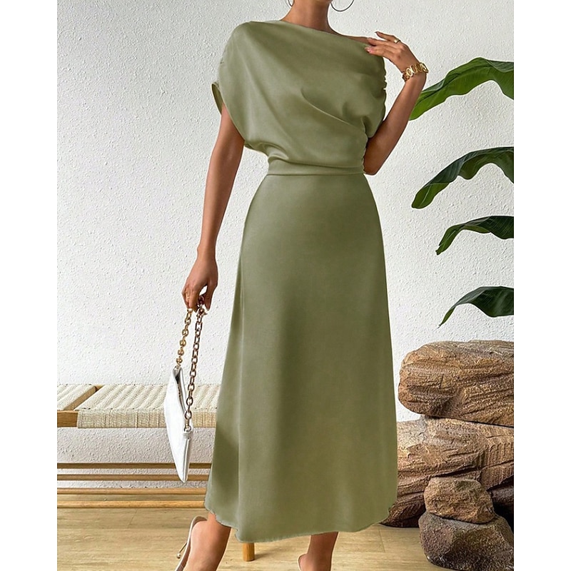 More information about Women's Midi Dress Party Dress Cocktail Dress Satin Dress Elegant Fashion Modern Party Special Occasion Evening Party Regular Fit Plain Sleeveless Crew Neck Black Dusty Blue Green Summer Spring Fall