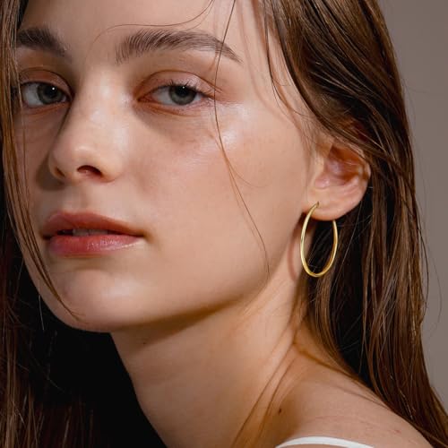 • [LUXURIOUS 14K GOLD FINISH] Crafted with 14k gold, these gold earring offer a luxurious shine that resists tarnishing, staying vibrant wear after wear. Hypoallergenic and gentle on sensitive skin, you can enjoy all-day comfort without irritation when wearing our big gold earrings