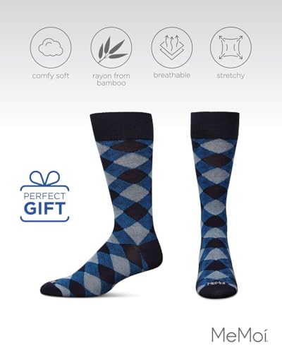 MeMoi Men's Argyle Rayon Dress Crew Socks 6