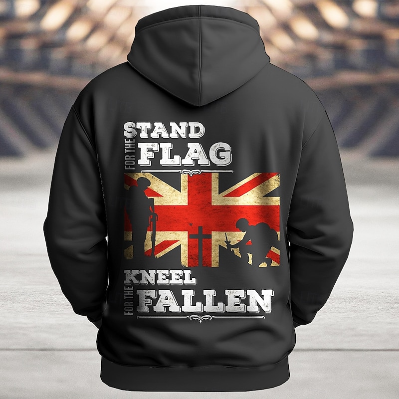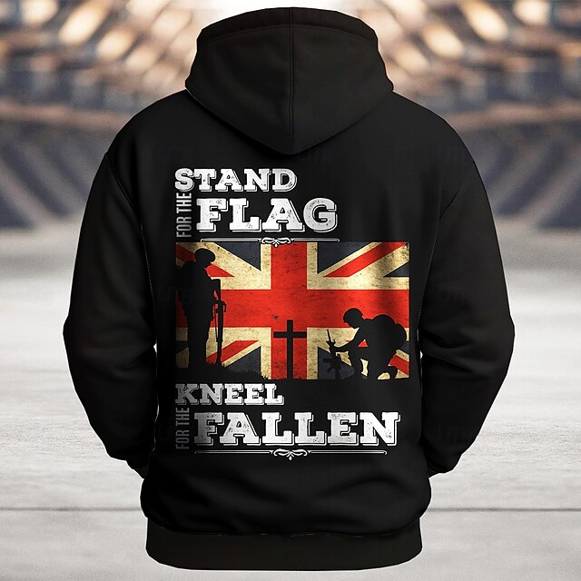 More information about Men's Flag UK Hoodie Sweatshirt Sports Fashion Crew Neck Outdoor Office Streetwear Black Blue Drawstring 3D Fall Winter Designer