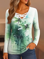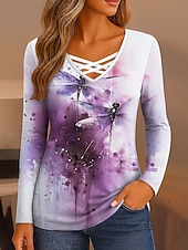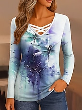 More information about Women's T Shirt Graphic Letter Dragonfly Vintage Stylish Classic Long Sleeve V Neck Regular Tops Daily Cut Out Print Blue Purple Green Spring Fall