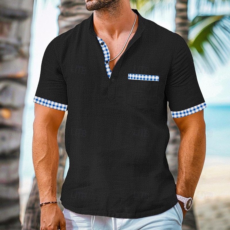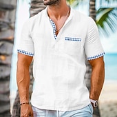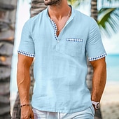 More information about Men's Shirt Linen Shirt Summer Shirt Beach Wear Plain Vacation Casual Black White Navy Blue Blue Long Sleeve Stand Collar Summer Spring & Summer Clothing Apparel