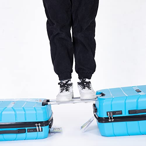 Luggage Sets, Suitcase with Wheel PP Luggage Sets Lightweight Suitcase with TSA Lock, Suitcases PP Material Durable Travel Luggage, 3-Piece Set (20/24/28) (Blue) 7