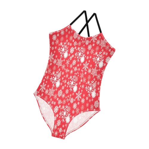 Girls Swimming Suits 3-10 Y Beach Swimsuit, White Snowflakes Red 1
