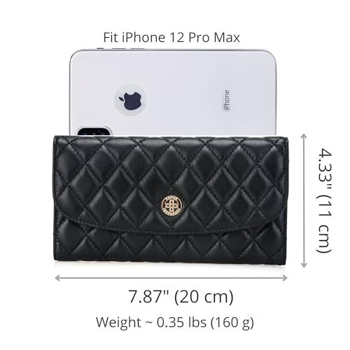 Luxury Quilted Leather Wallet Flap Long Wallet Credit Card Holder Coin Purse Business Card Holder Lady Clutch Gift for Women Girl Black 5