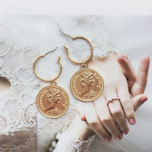 More information about Doubnine Coin Hoops Earrings Medallion Greek Goddess Portrait Gold Dainty Tiny Disc Dangle Women Fashion Jewelry