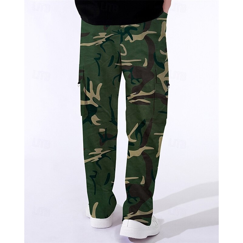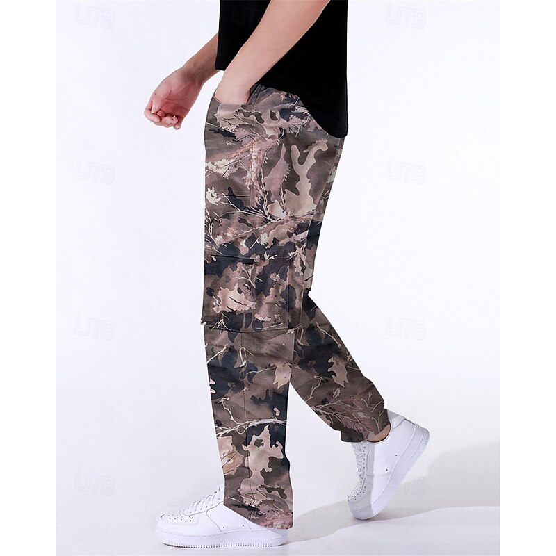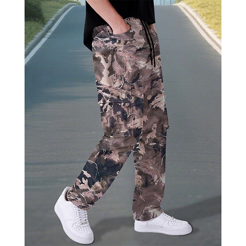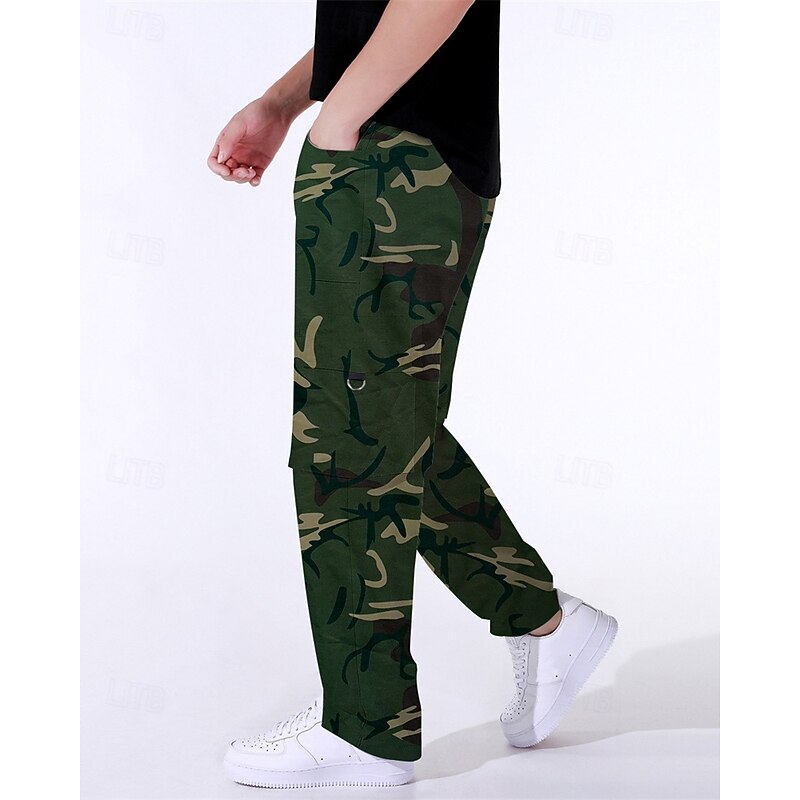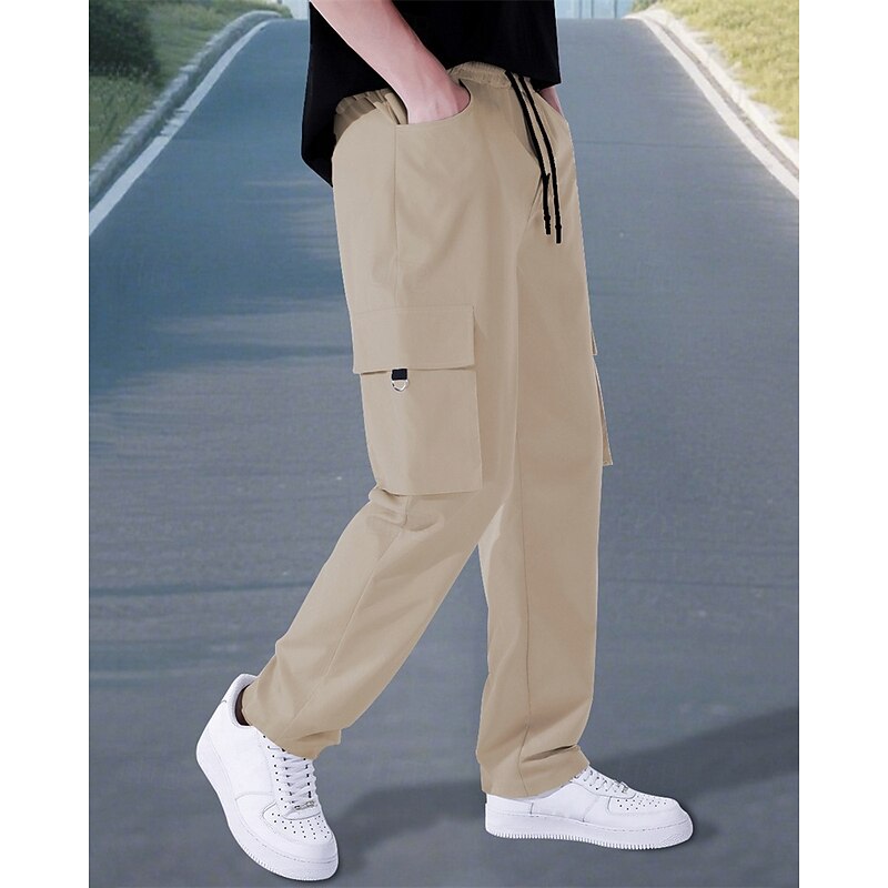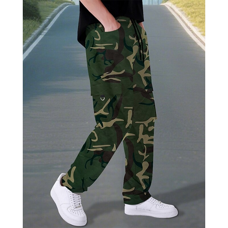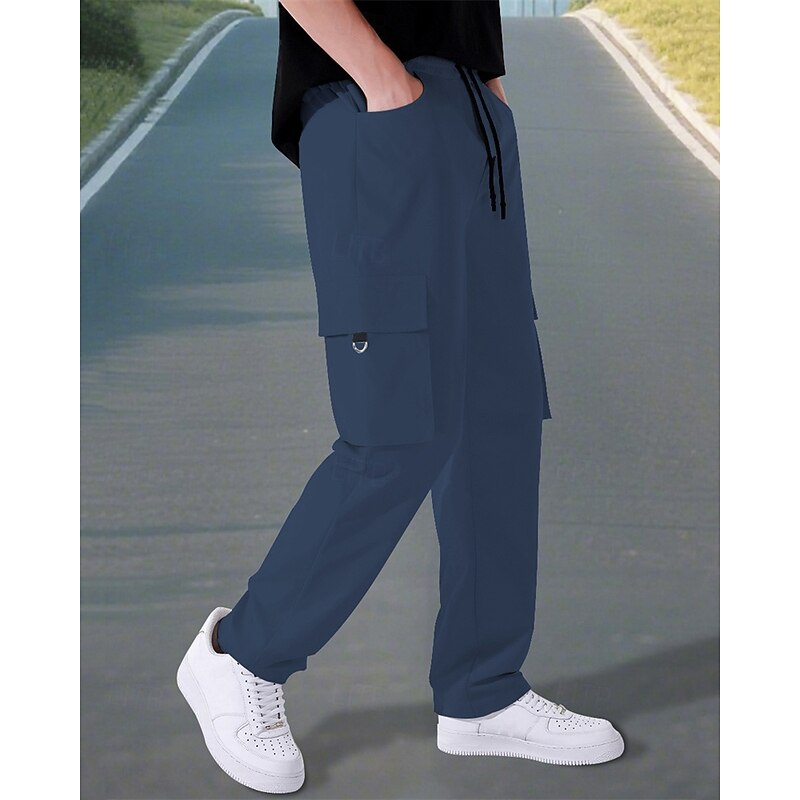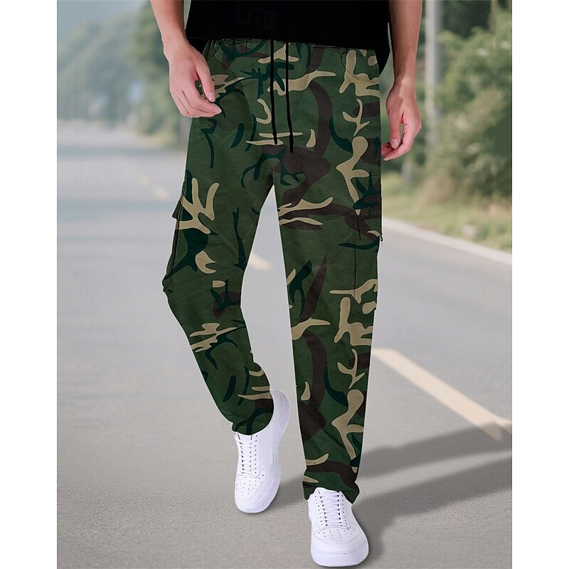 Men's Cargo Pants Trousers Elastic Waist Drawstring Multi Pocket Plain Camouflage Wearable Outdoor Daily Camping & Hiking Fashion Classic Black Army Green 23