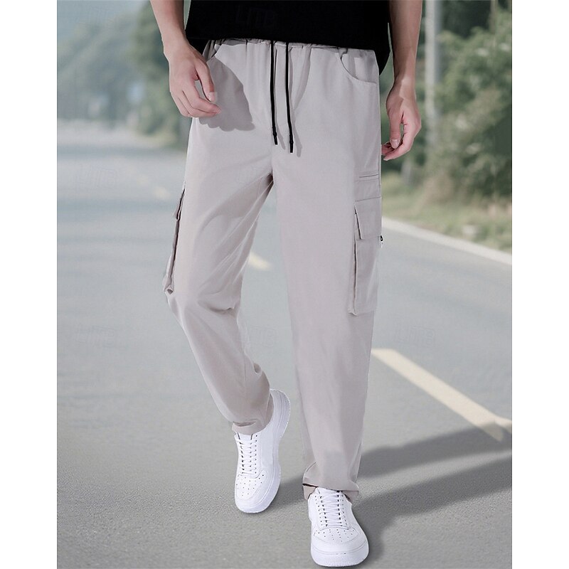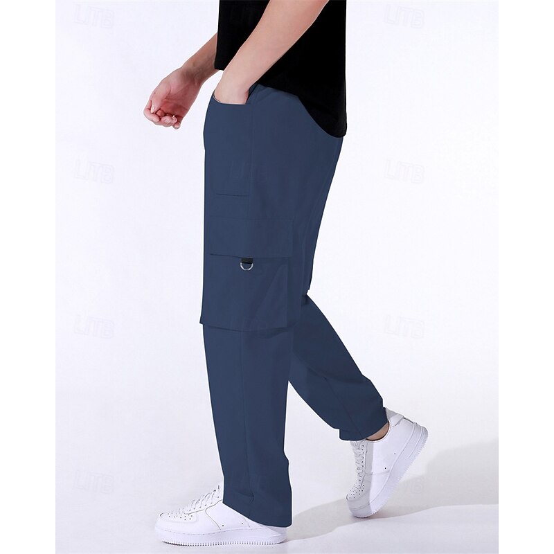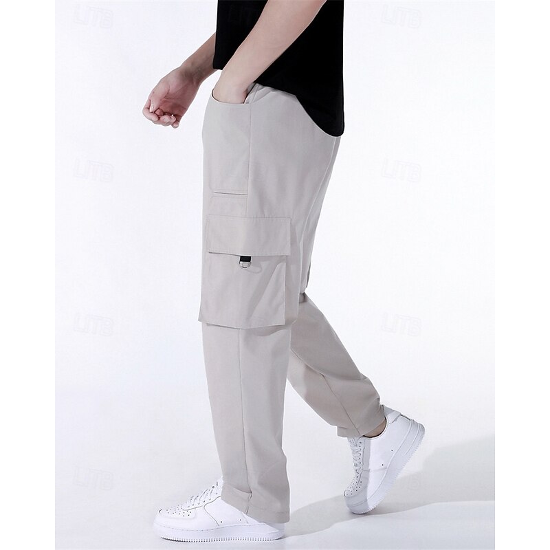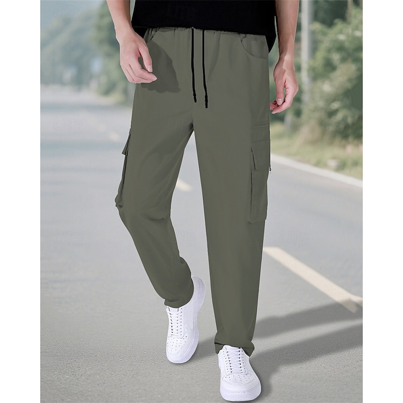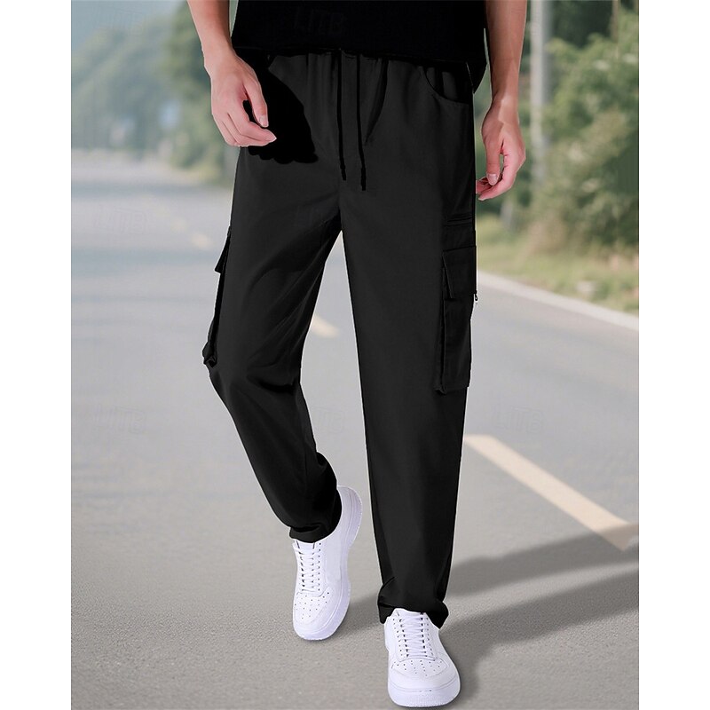 Men's Cargo Pants Trousers Elastic Waist Drawstring Multi Pocket Plain Camouflage Wearable Outdoor Daily Camping & Hiking Fashion Classic Black Army Green 37