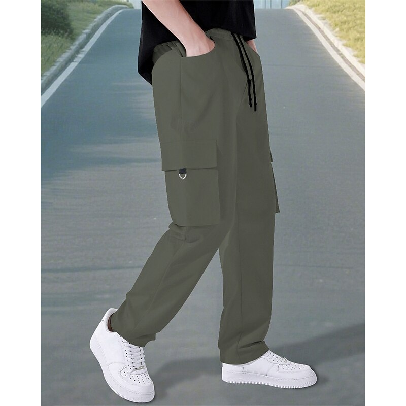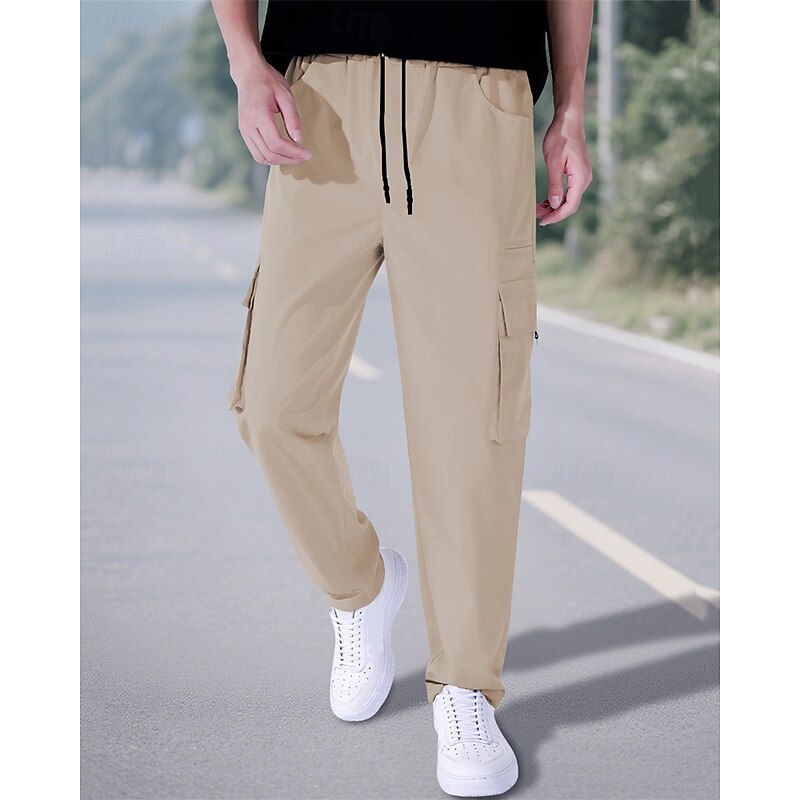 Men's Cargo Pants Trousers Elastic Waist Drawstring Multi Pocket Plain Camouflage Wearable Outdoor Daily Camping & Hiking Fashion Classic Black Army Green 24