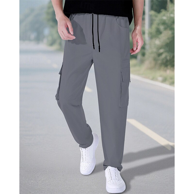Men's Cargo Pants Trousers Elastic Waist Drawstring Multi Pocket Plain Camouflage Wearable Outdoor Daily Camping & Hiking Fashion Classic Black Army Green 39
