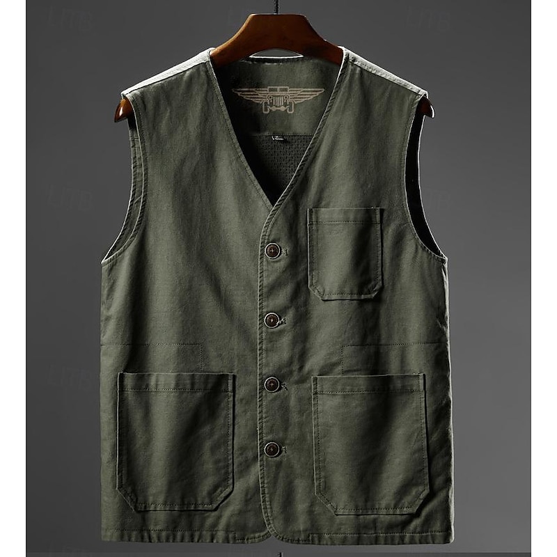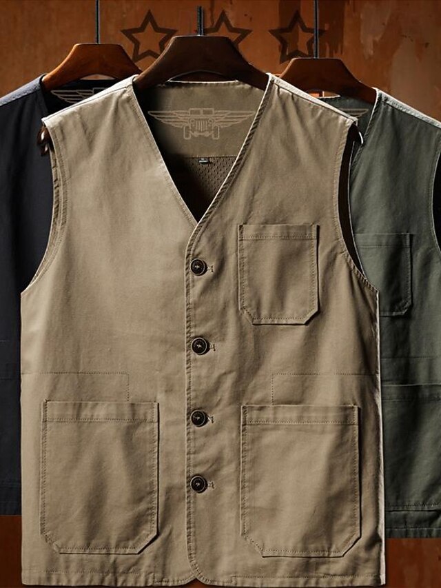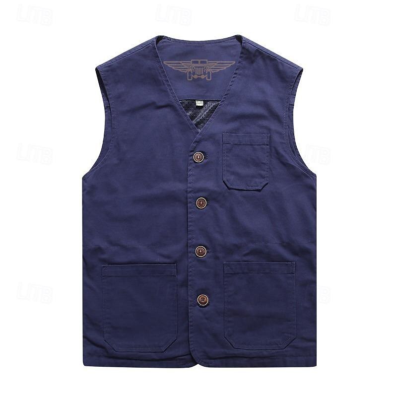 More information about Men's Vest Gilet Fishing Vest Hiking Vest Sleeveless Vest Gilet Jacket Outdoor Fishing Daily Wear Vacation Modern Contemporary Casual Summer Spring Button Pocket 95% Cotton Breathability Soft